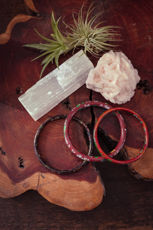 Set of 3 Brass Enamel Cloisonné Bracelet in Warm Tones - Vintage Colorful Chinese Bangles