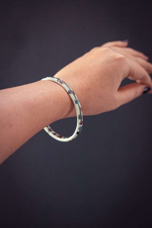 White Brass Enamel Cloisonné Bracelet - Vintage Colorful Chinese Bangle