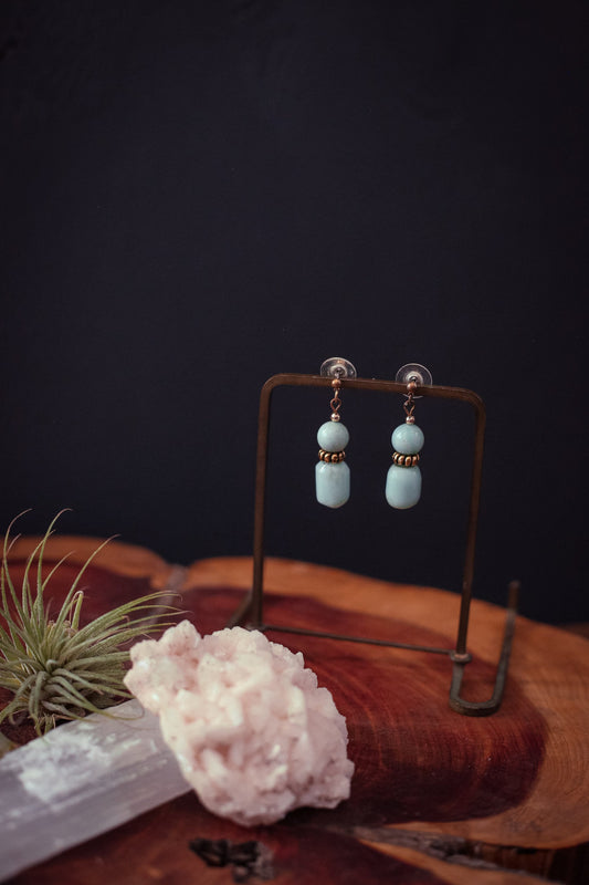 Aqua Blue Stone Earrings - Vintage Estate Earring
