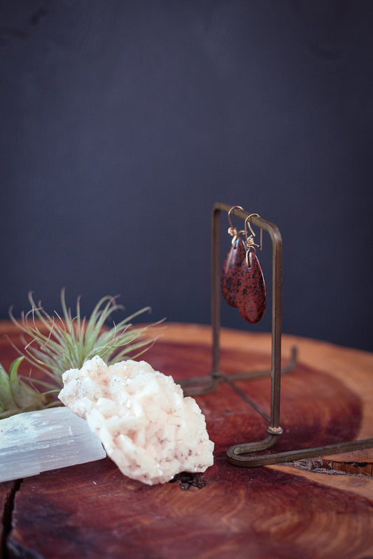 Mahogany Jasper Teardrop Earrings with Kidney Hook - Vintage Estate Earrings