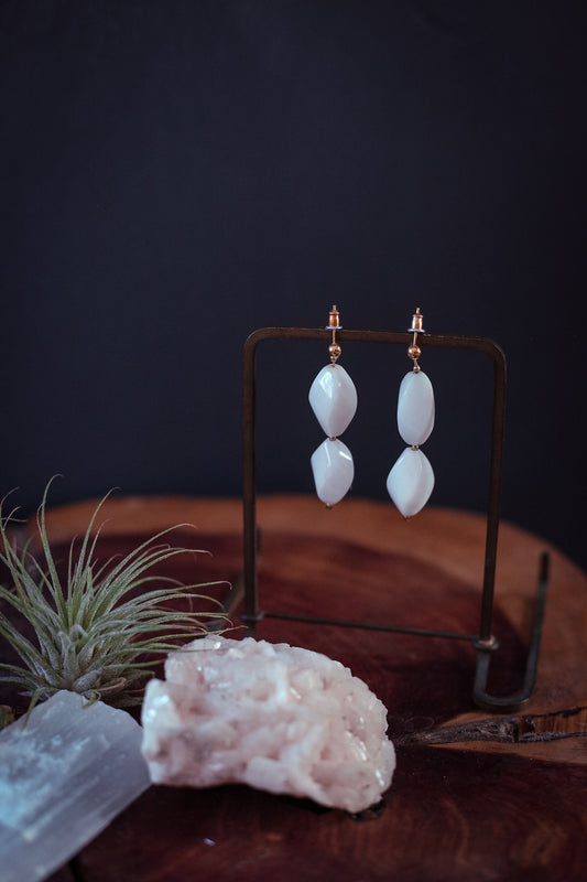 White Opal Seed Bead Earrings - Vintage Estate Jewelry