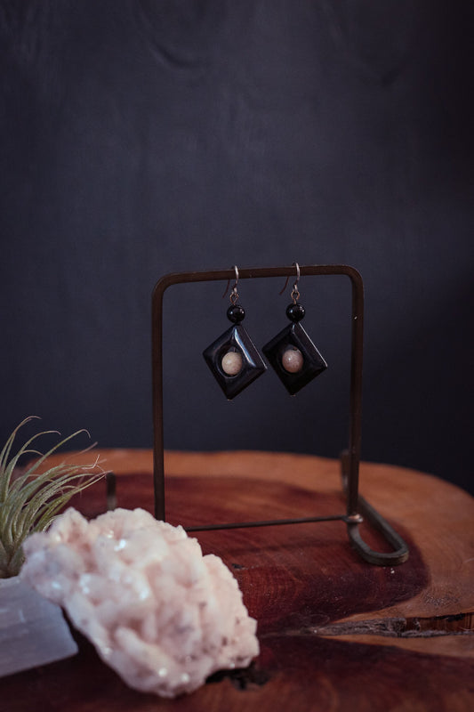 Unique Onyx & Jasper Statement Earrings - Vintage Onyx Jasper Earrings