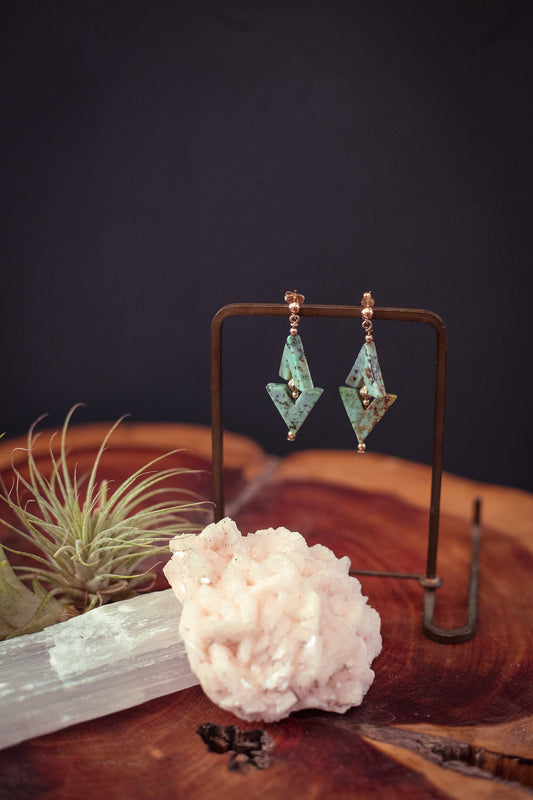 Chrysocolla Earrings with Gold beads & 14k Gold Filled Ball Post - Estate Vintage Gold Semiprecious Stone Earrings