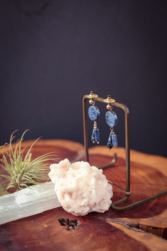 Lapis & Gold Wired Earrings with Gold Ball Post - Vintage Blue Lapis Lazuli Earrings
