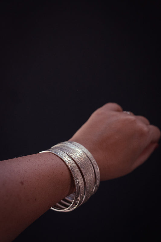 Sterling Silver Stamped Bangles - Vintage Estate Silver Bracelets