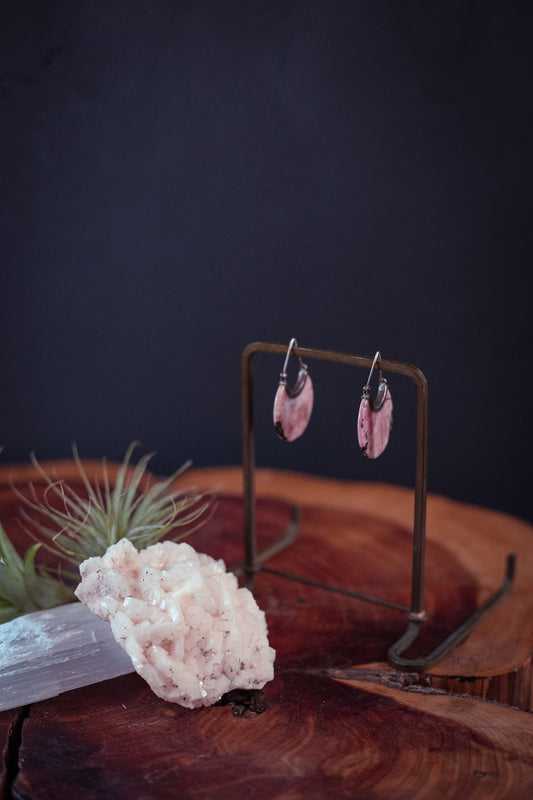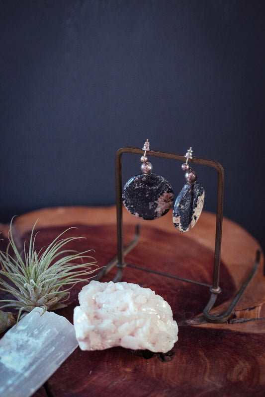 Rhodonite Sterling Silver Eclipse Earrings - Vintage Estate Earring