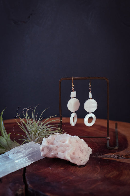 White Mother of Pearl Gold Seed Bead Earrings - Vintage Shell & Bead Earrings