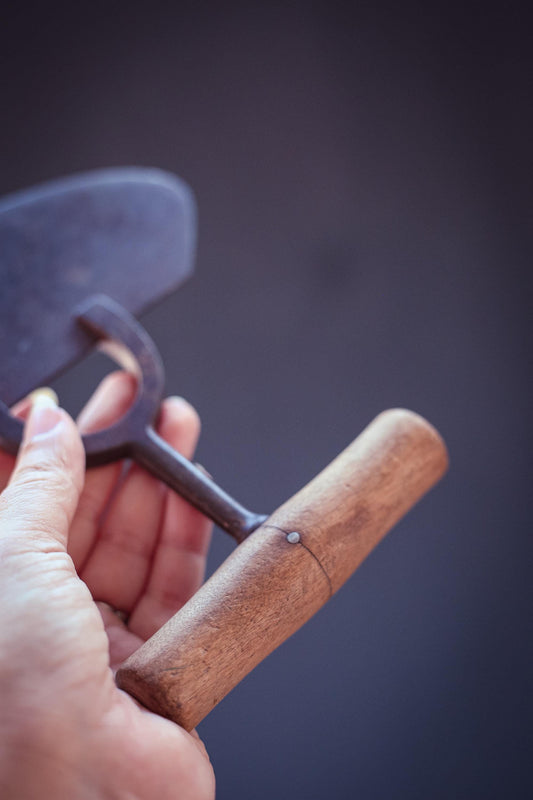 Vintage Inuit Ulu Style Hand Knife - Primitive Wood and Metal Mezzaluna Knife