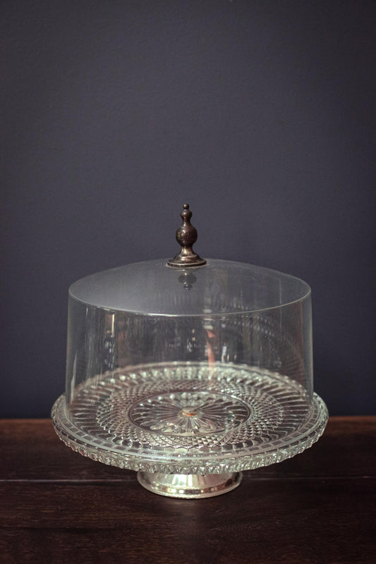 Glass Cake Stand with Lid - Vintage Pedestal Stand with Dome Lid