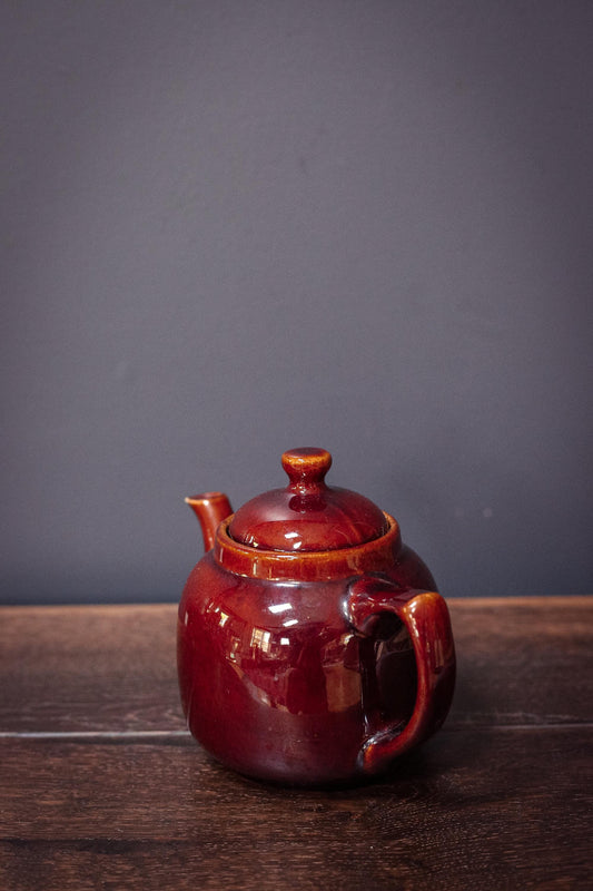 Brown Glaze Tea Pot - Vintage Midcentury Modern Drip Glaze Pottery
