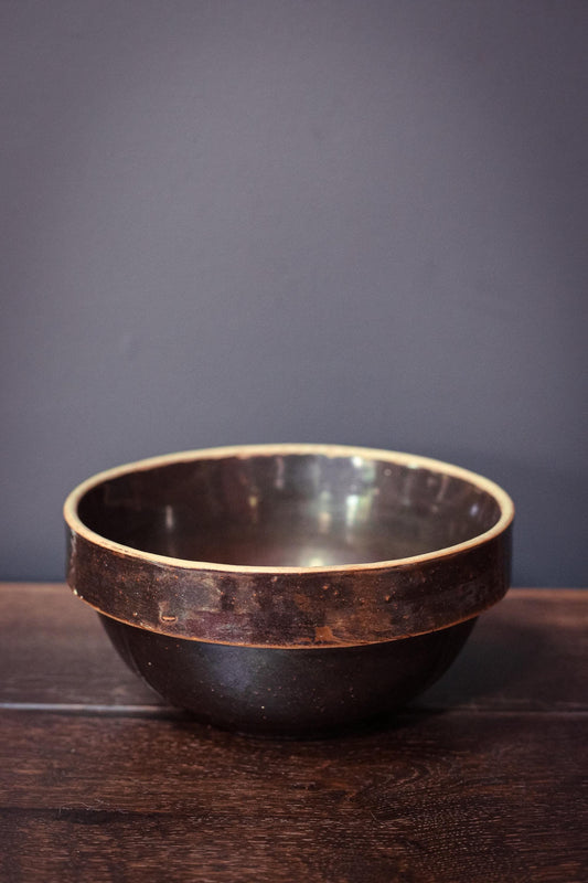 Brown Salt Glaze Stoneware Dough Mixing Bowl - Vintage Ceramic Mixing Bowl
