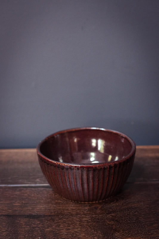 Stoneware Ridged Brown Glaze Mixing Bowl - Vintage Zanesville Ohio Ceramic Stoneware