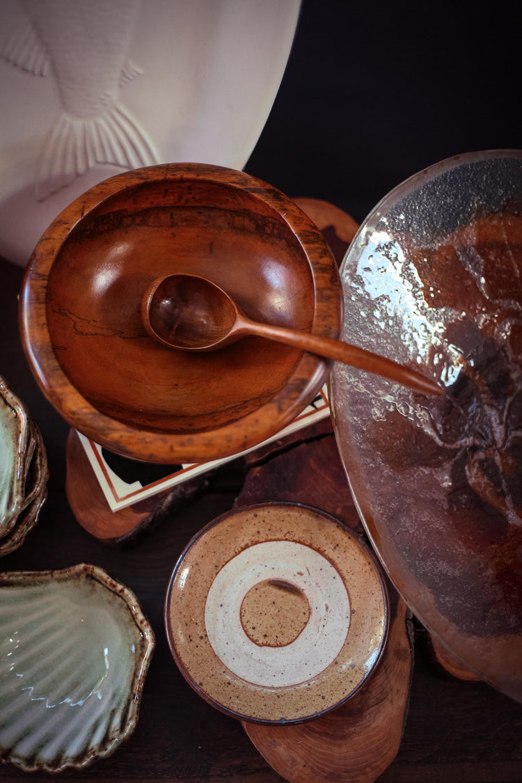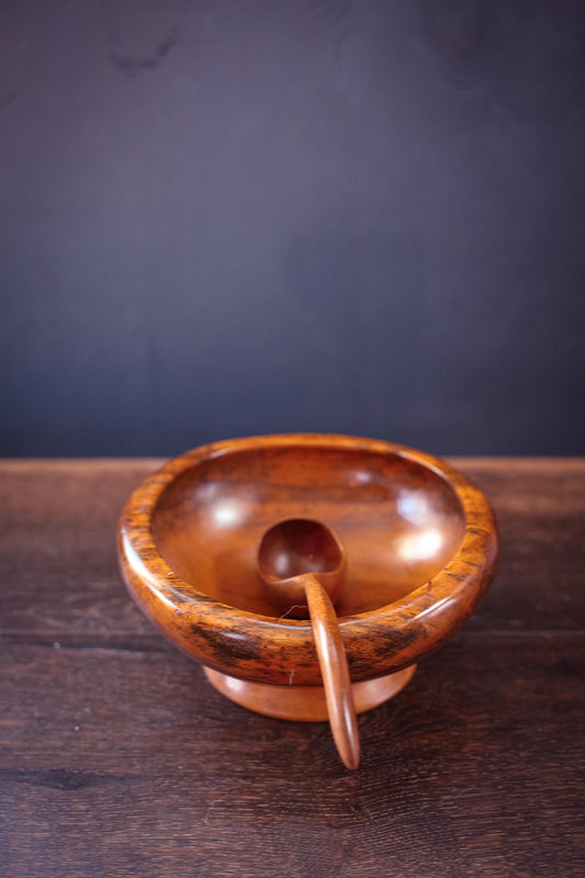 David Auld Hand Carved Wooden Bowl and Ladle - Vintage Midcentury Wood Bowl