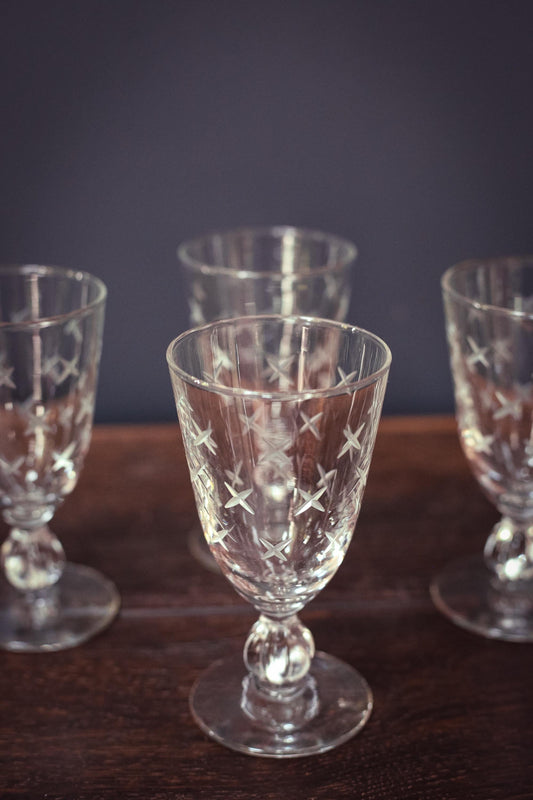 Set of 4 Crystal Apertif Glasses Stemware - Vintage Crystal Barware