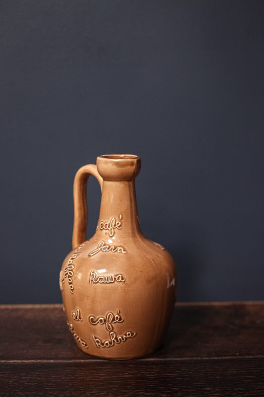 Taupe Ceramic Coffee Carafe Multiple Languages - Vintage Ceramic Coffee Pitcher Jug