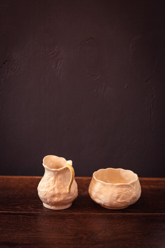 Porcelain Lotus Pattern Cream Sugar Set Belleek Ireland - Antique Mini Porcelain Cream & Sugar Set