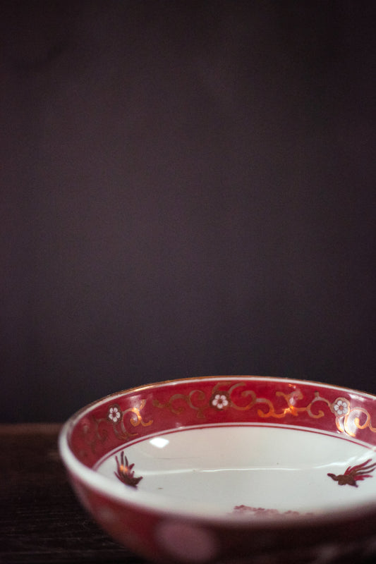 Reddish Orange Imari Bowl - Vintage Gilded Bowl