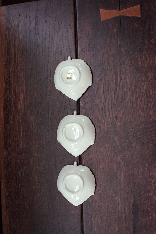 Set of 3 Leaf Shaped Dipping Bowls by HIC Japan - Vintage Porcelain Sauce Bowls