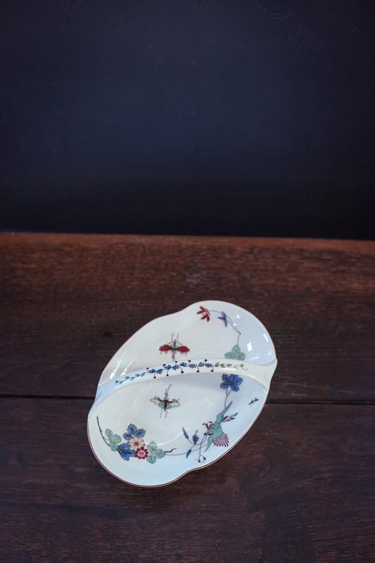 Botanical Hand Painted Chantilly Hand Painted Porcelain Dish - Vintage Asymmetrical Porcelain Serving Plate with Handle