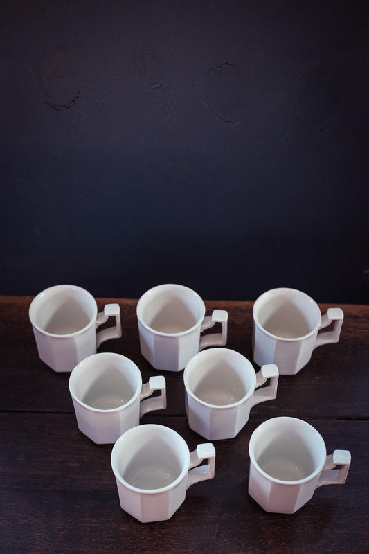 Set of 7 Mugs by Johnson Bros. Made in England - Vintage Set of Heritage White Octagonal Ironstone Mugs