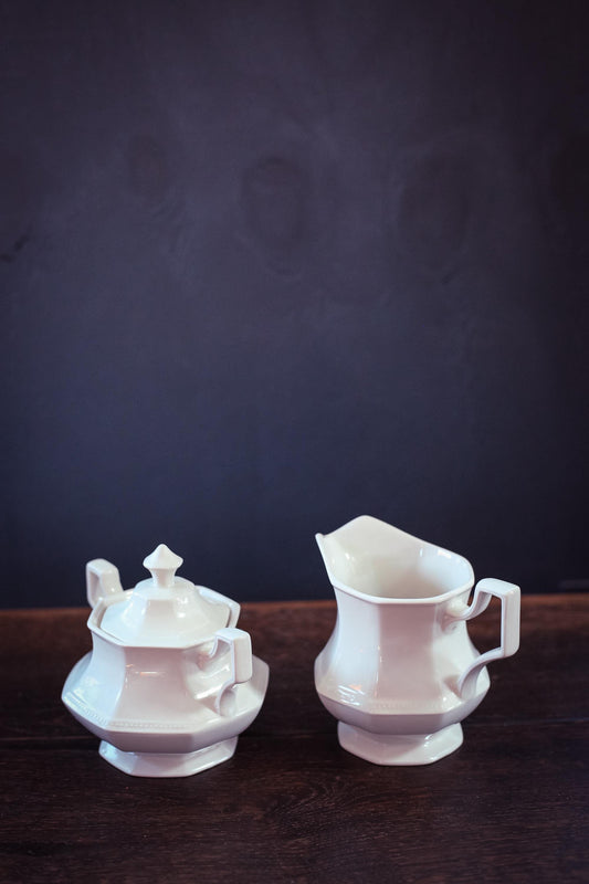 Cream & Sugar by Johnson Bros. Made in England - Vintage Heritage White Octagonal Ironstone
