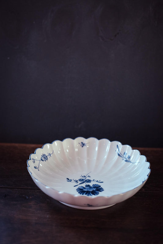 Blue and White Limoges Hand Painted Scalloped Floral Bowl - Antique Limoges Chantilly Blue Floral Scalloped Porcelain Dish