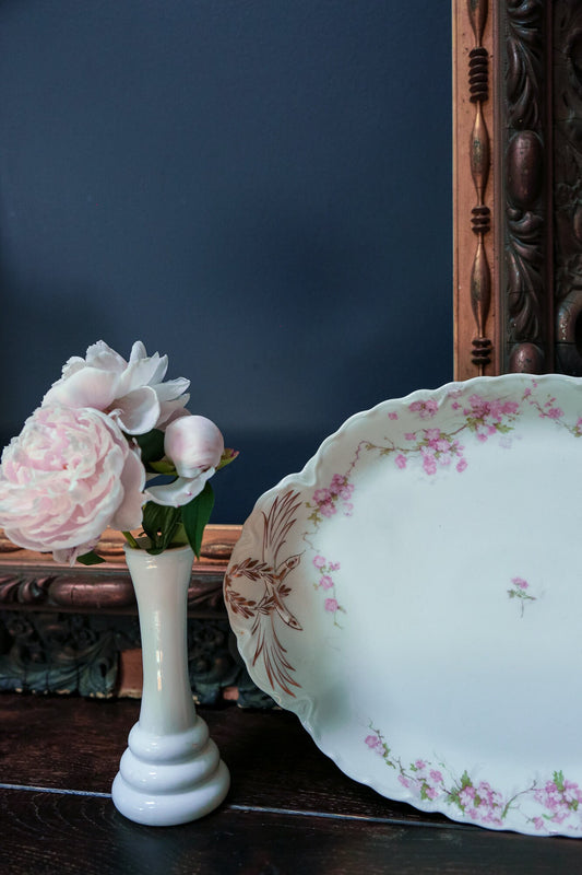 Haviland Limoges Gilded Pink Rose Floral Platter - Vintage Haviland Limoges Porcelain Scallop Edge Serving Plate