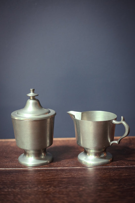 Pewter Sugar & Cream Set - Vintage Pewter Metal Footed Cream Sugar Set