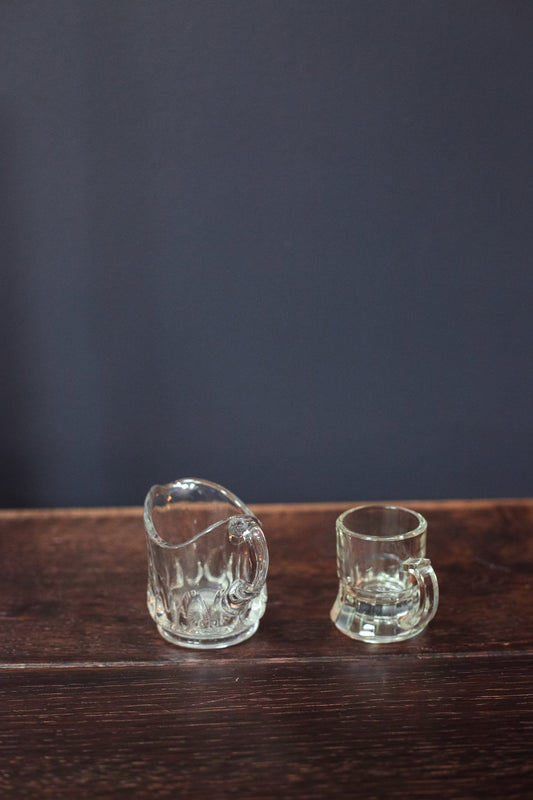 Pair of Glass/Crystal Miniature Pitcher and Stein - Mini Vintage Glass Tableware