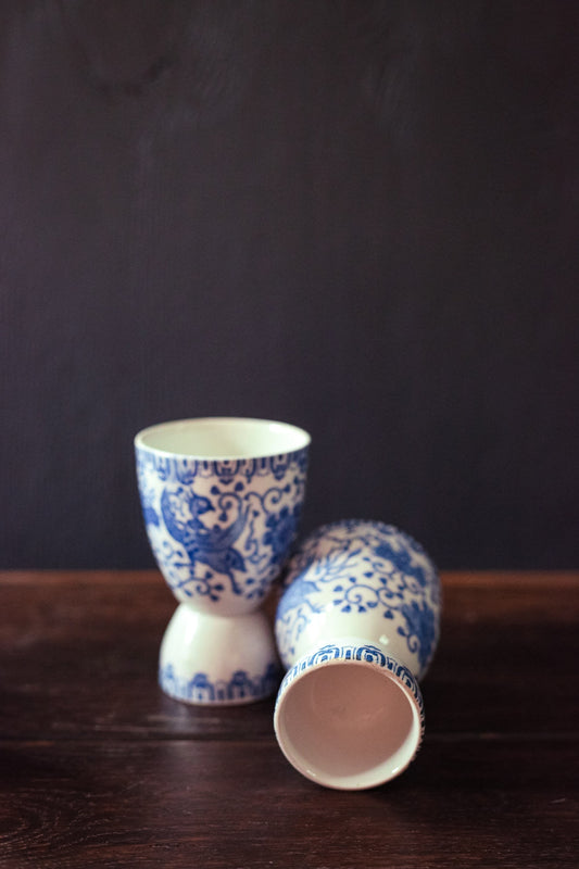 Phoenix Blue and White Porcelain Egg Cups - Vintage/Antique Japanese Phoenix Ware Cups