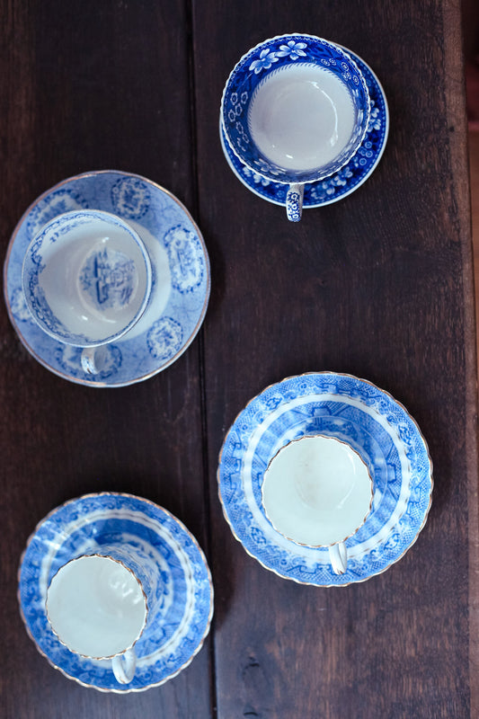 Antique Blue White Porcelain Cups & Saucers - Antique Ceramic Select Style From Dropdown