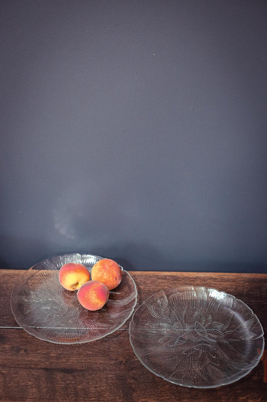Arcoroc France Cut Glass Fruits Plates with Palm Design - Vintage Arc France Plates