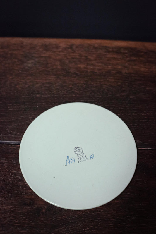 Hand Painted Royal Copenhagen Tranquebar Blue Floral with Lattice Trivet - Vintage Signed Fajance Blue and White Porcelain Ceramic Trivet