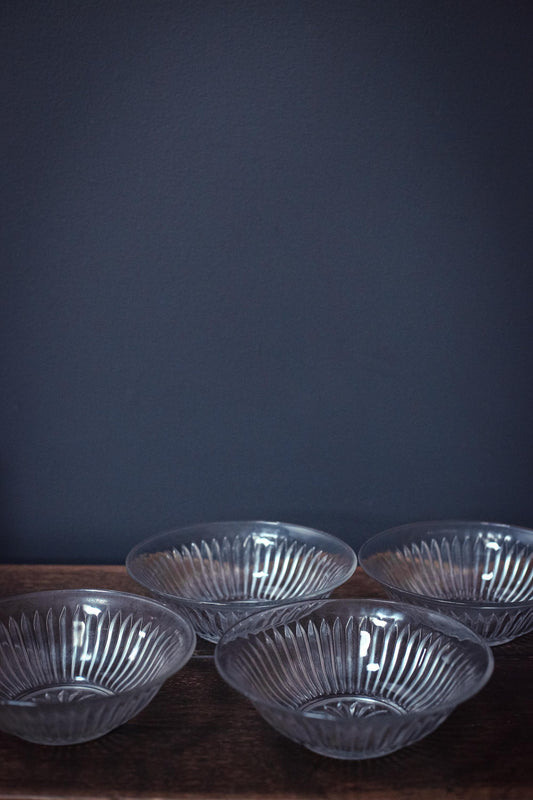 Set of 4 Clear Glass Bowls with Pressed Sunburst Design - Vintage Glass Bowls 7 inches wide KIG Indonesia