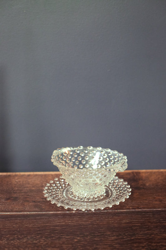 Duncan Miller Hobnail Clear Bowl & Dish - Vintage Pressed Glass Mayonnaise Dish