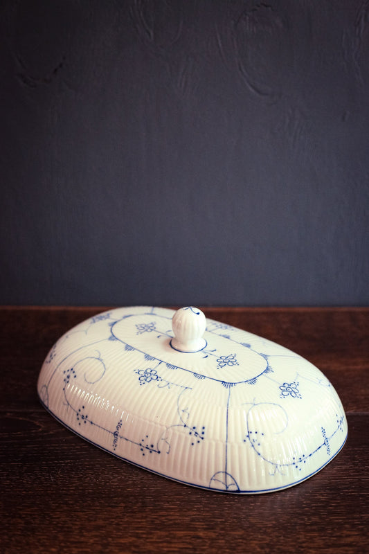 Antique Cover Villeroy & Boch Dresden Blue Fluted - Hand Painted Blue White China Rounded Rectangle Warming Cover Lid
