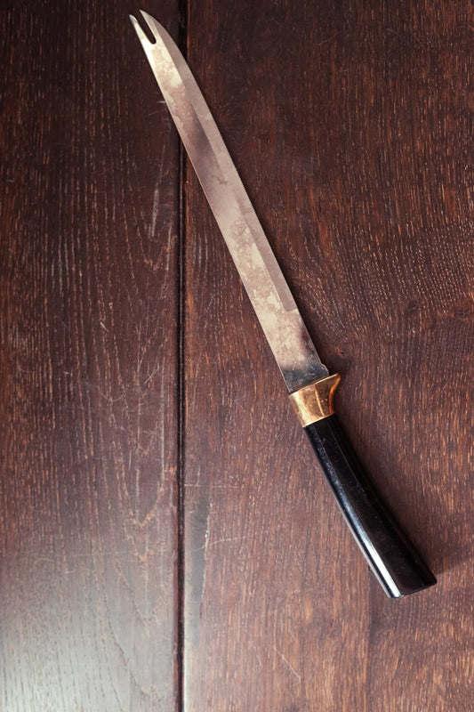 Sheffield Stainless Steel Carving Knife with Black and Gold Handle - Vintage Regent Forever Sharp Carver Made in England