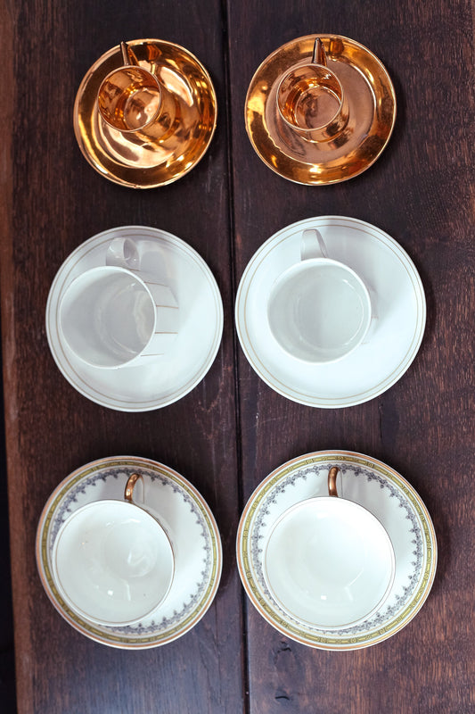 White and Gold Cup Saucer Sets - Vintage Porcelain Tea cup sets