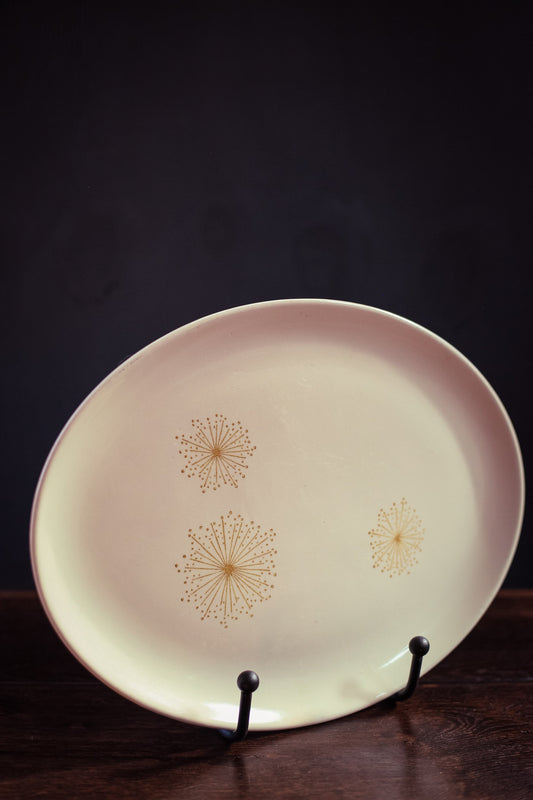 Stetson Hand Painted Oval Platter with Midcentury Modern Star Design - Vintage Stetson Ceramic Serving Plate