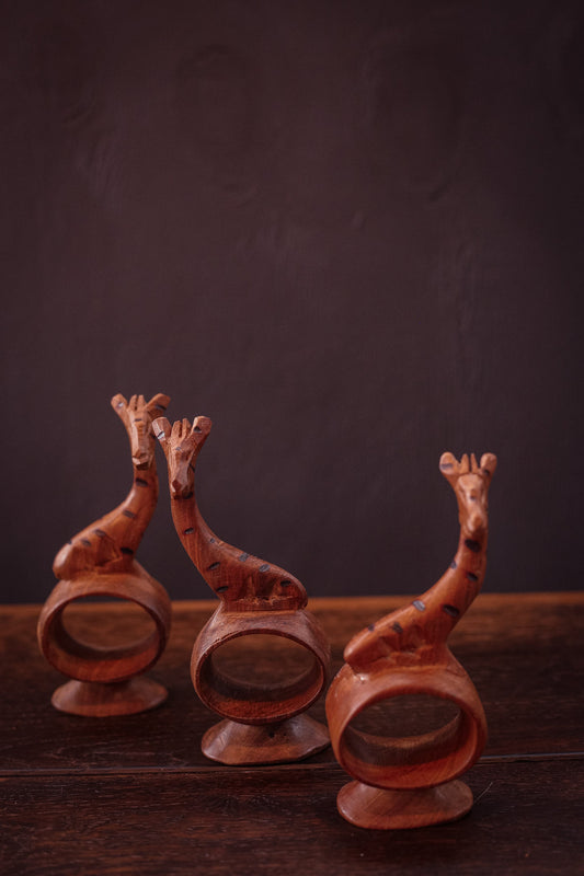 Hand Carved Wooden Animal Napkin Rings - Vintage Wood Napkin Rings