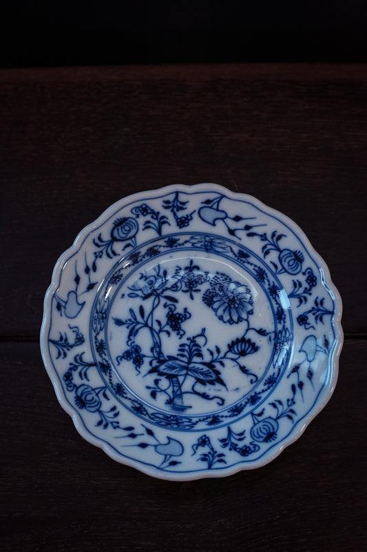 Antique Meissen Blue Onion 6.75" Plate - Small Blue White Plate Made in Germany Oval Backstamp