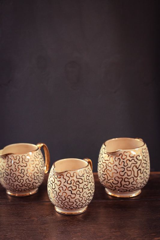 Trio of Hand Painted Gold Porcelain Pitchers - Vintage Porcelain