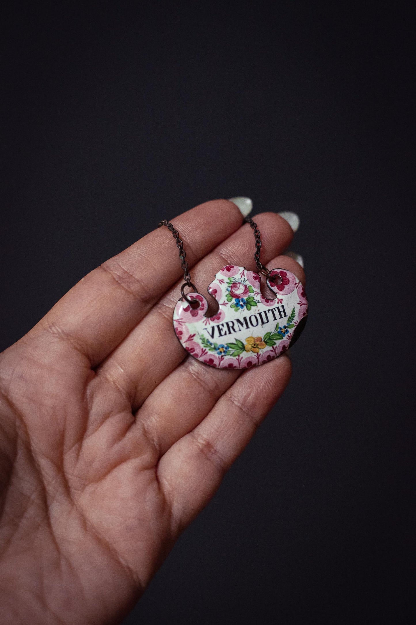 Antique Vermouth Enamel Metal Tag - Vintage Liqueur Bar Tag Label