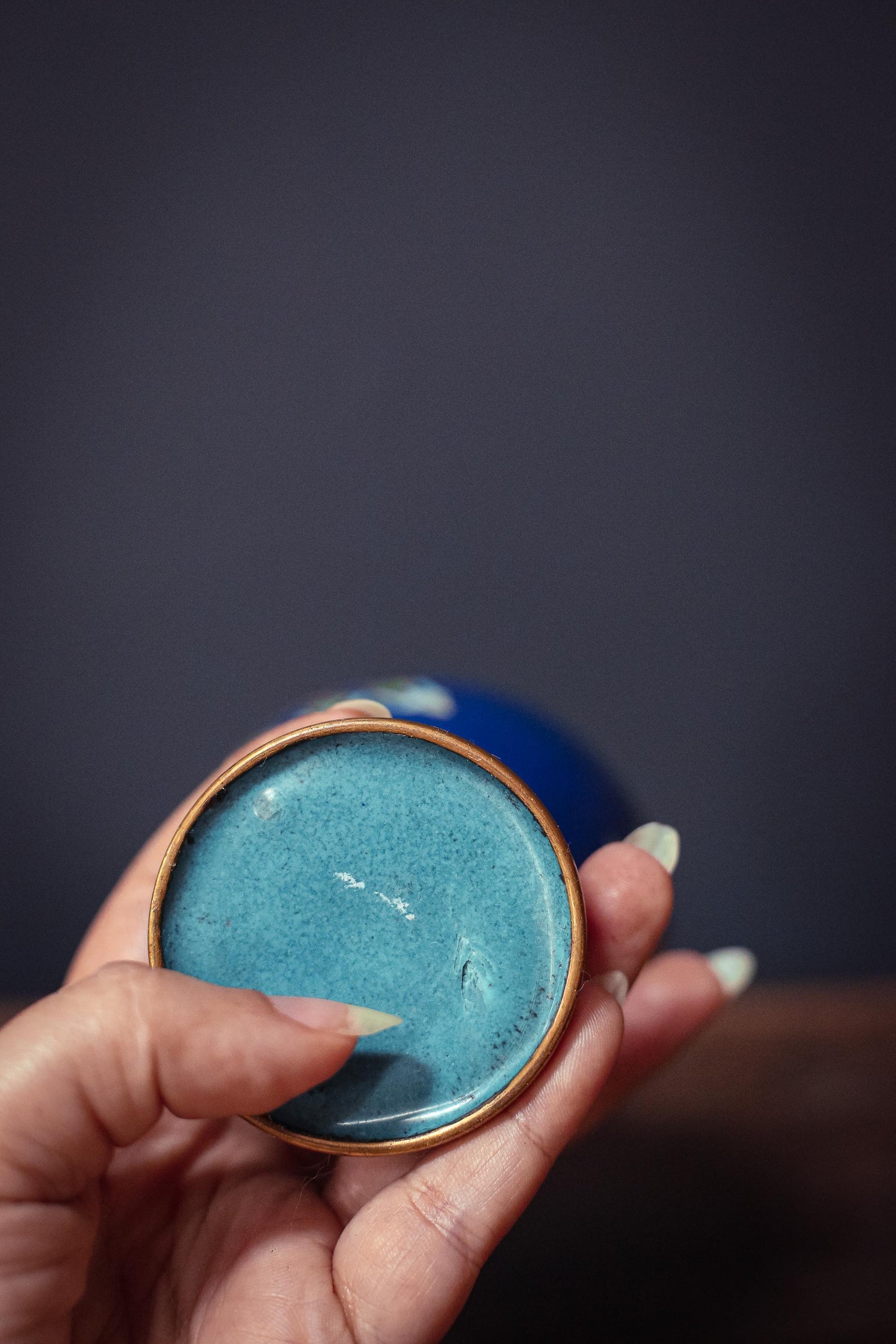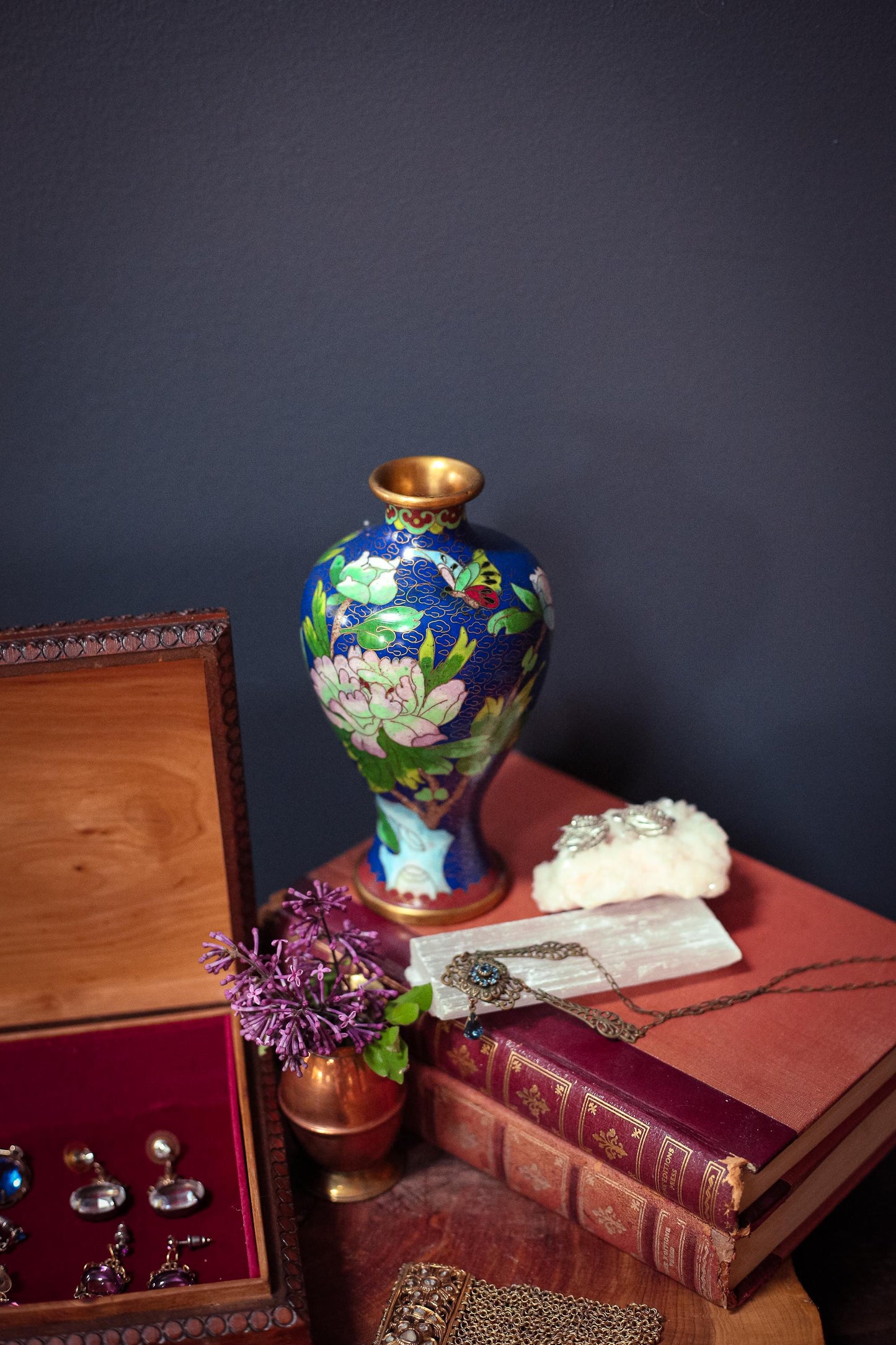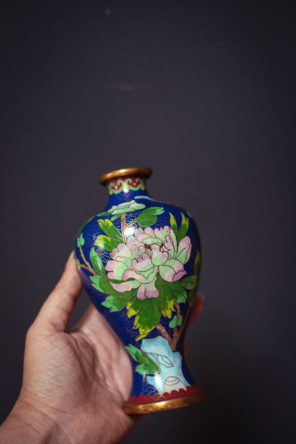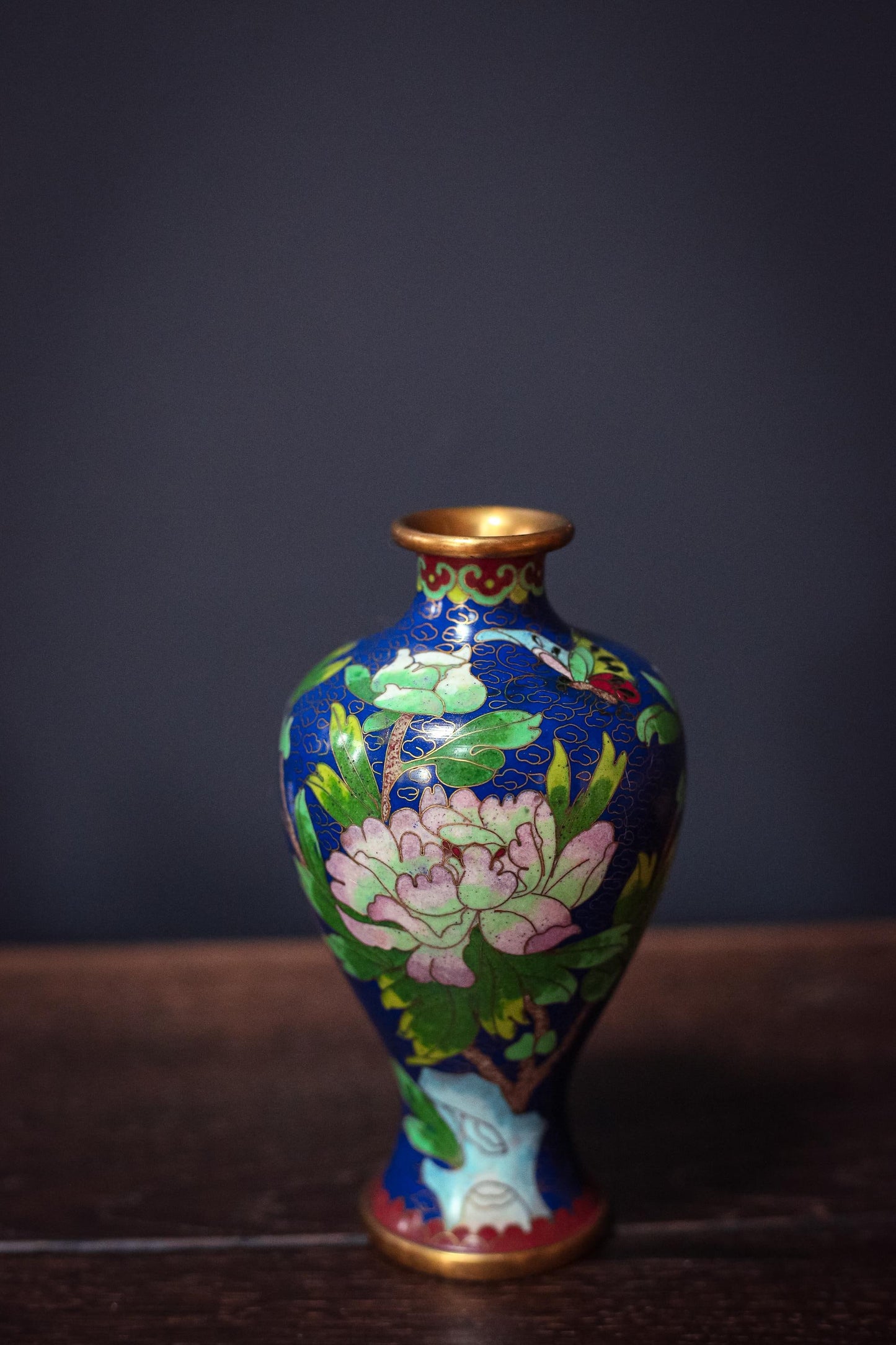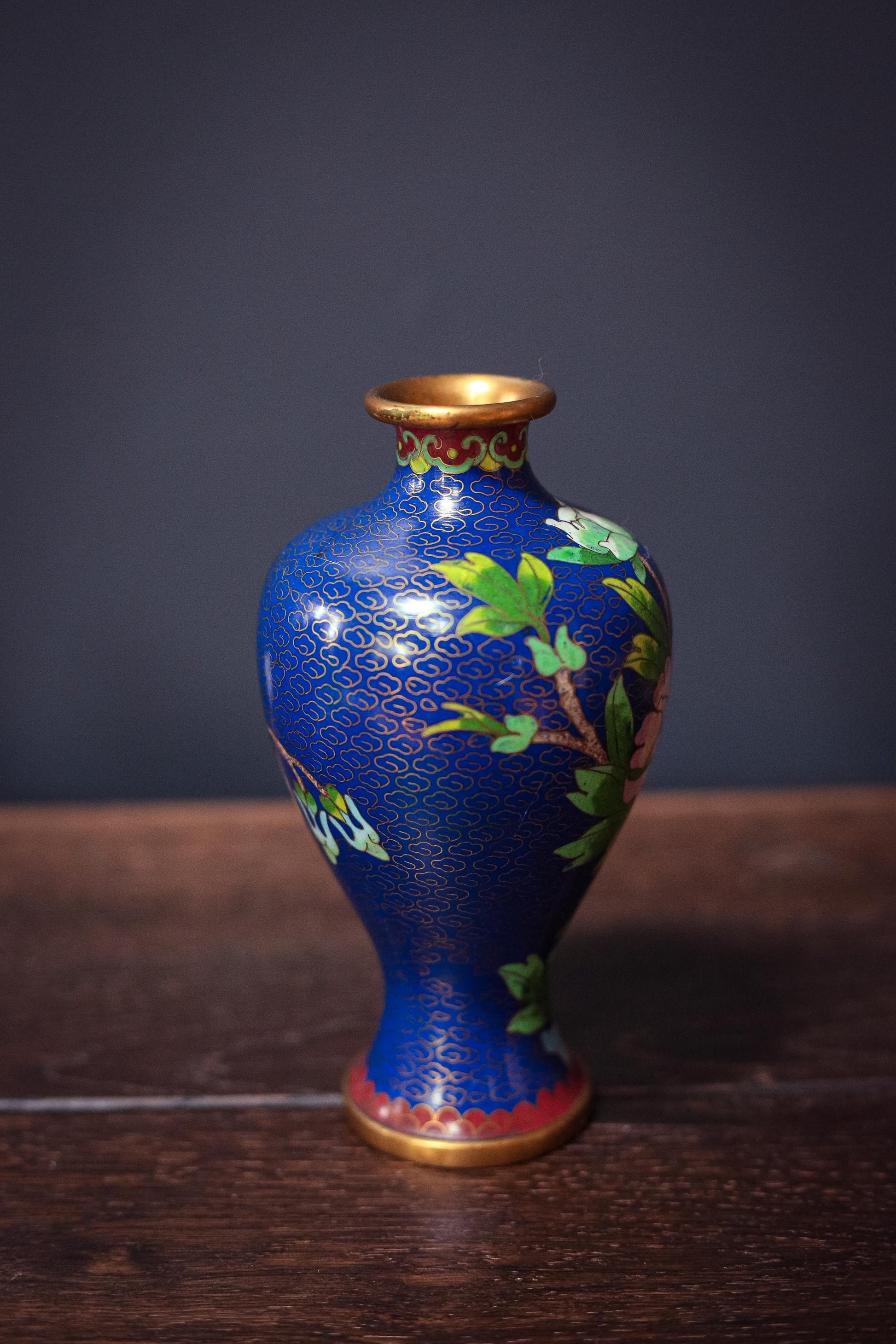 Blue Floral Cloisonne 6" Vase - Vintage Chinese Brass Enamel Vase