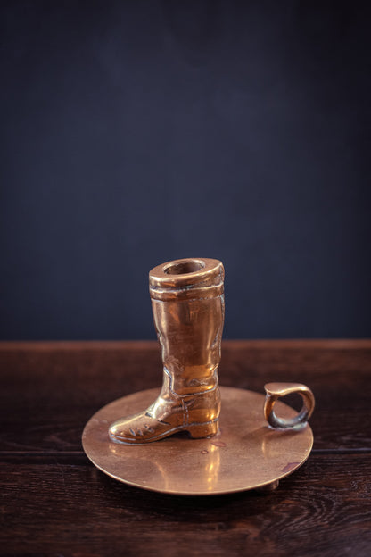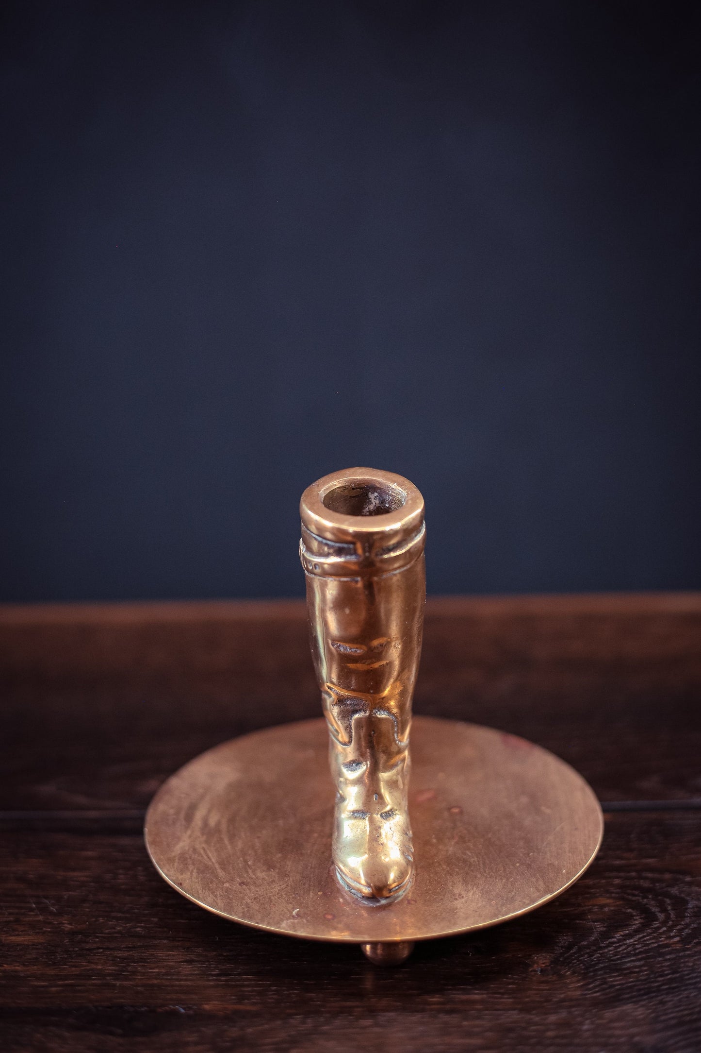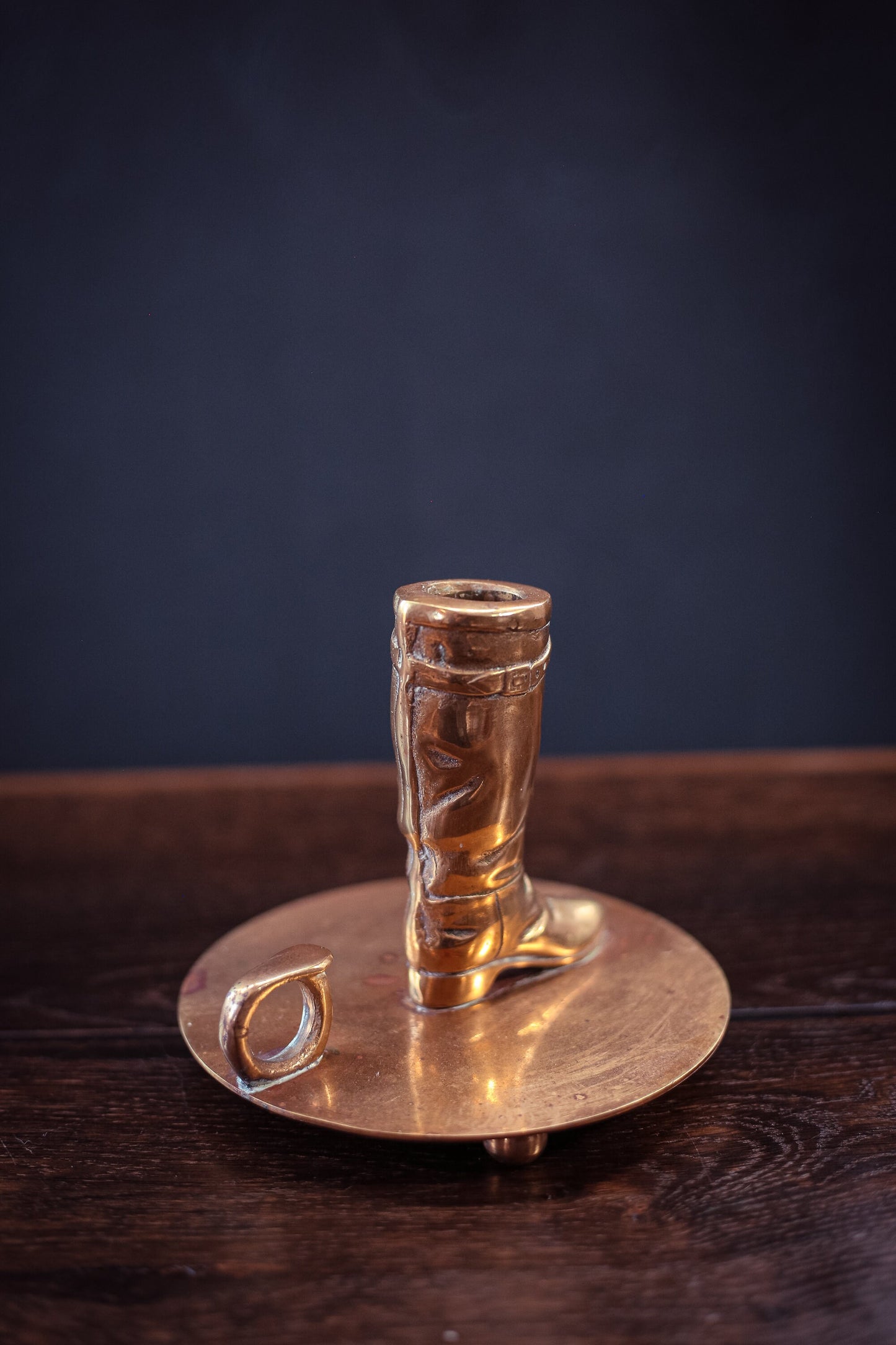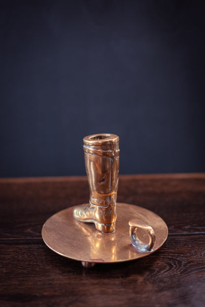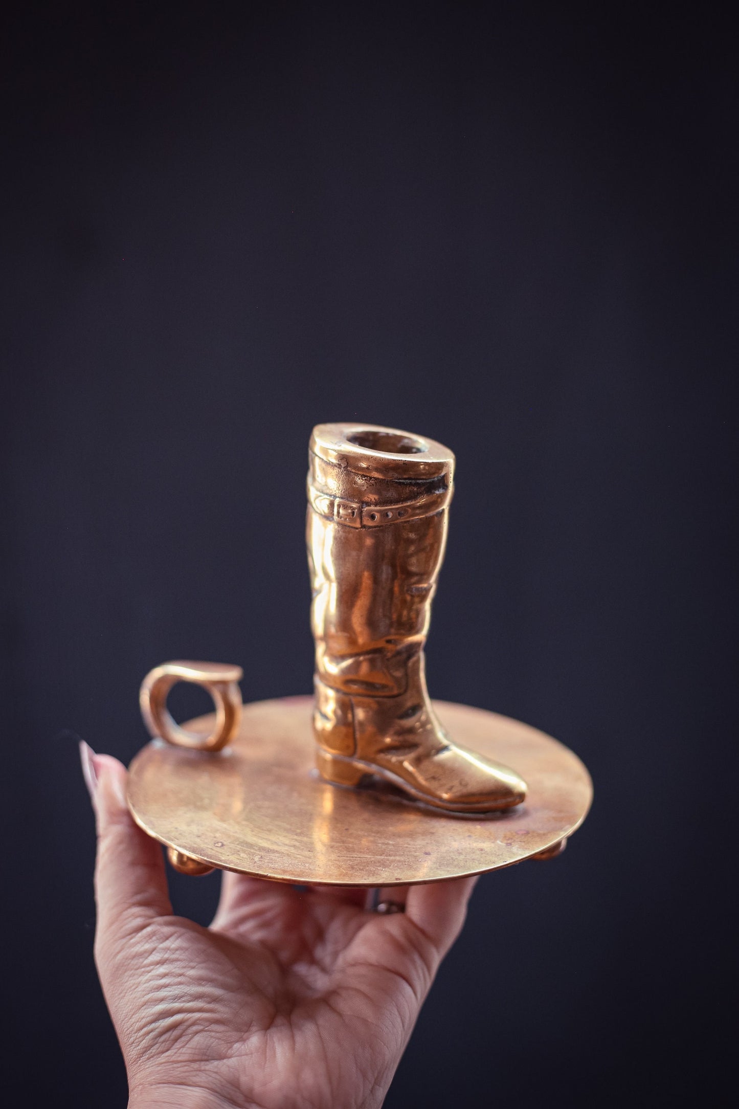 Brass Boot Chamber Candle Holder - Vintage Solid Brass Cowboy Boot Disc Candle Base