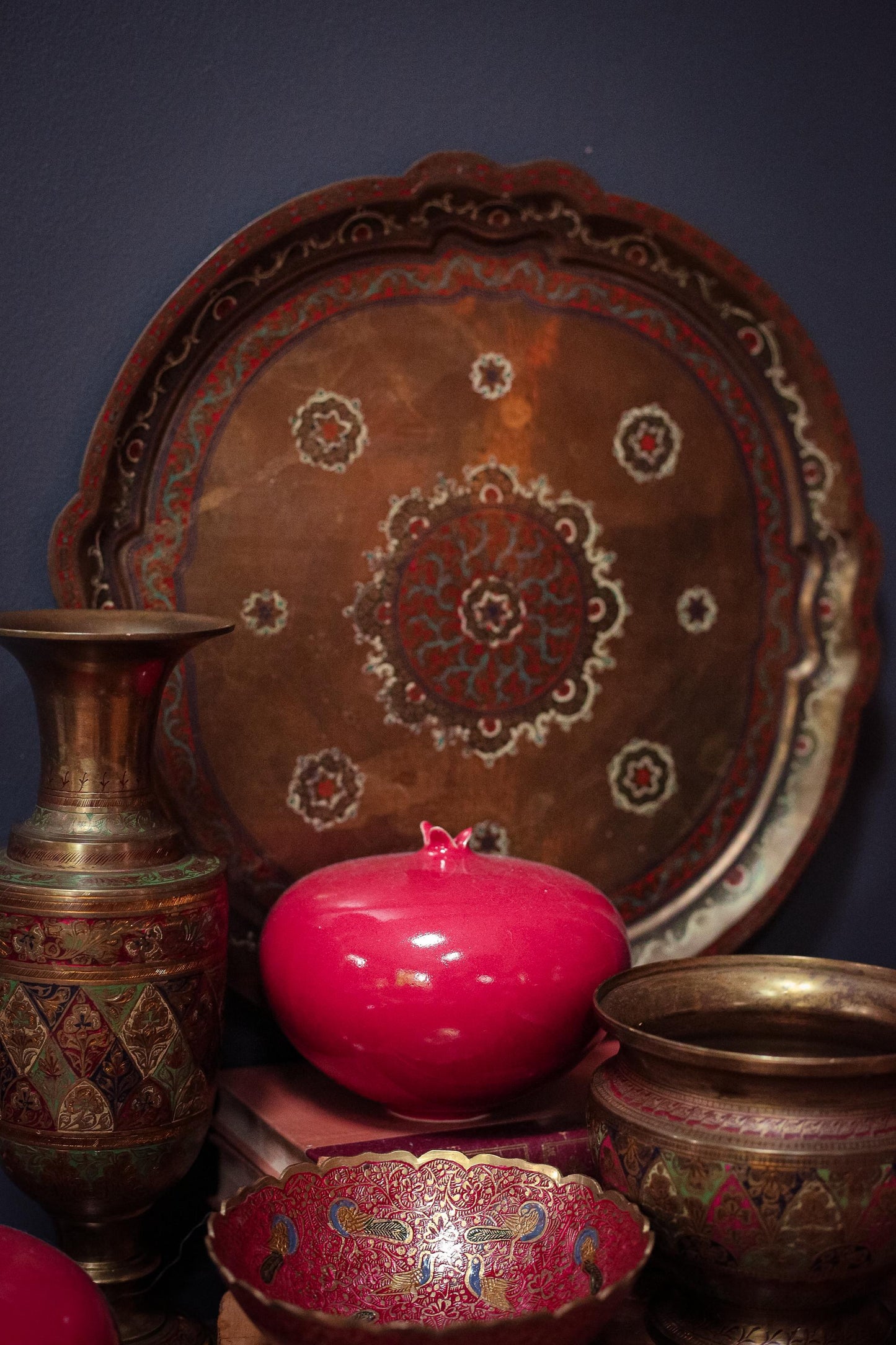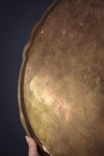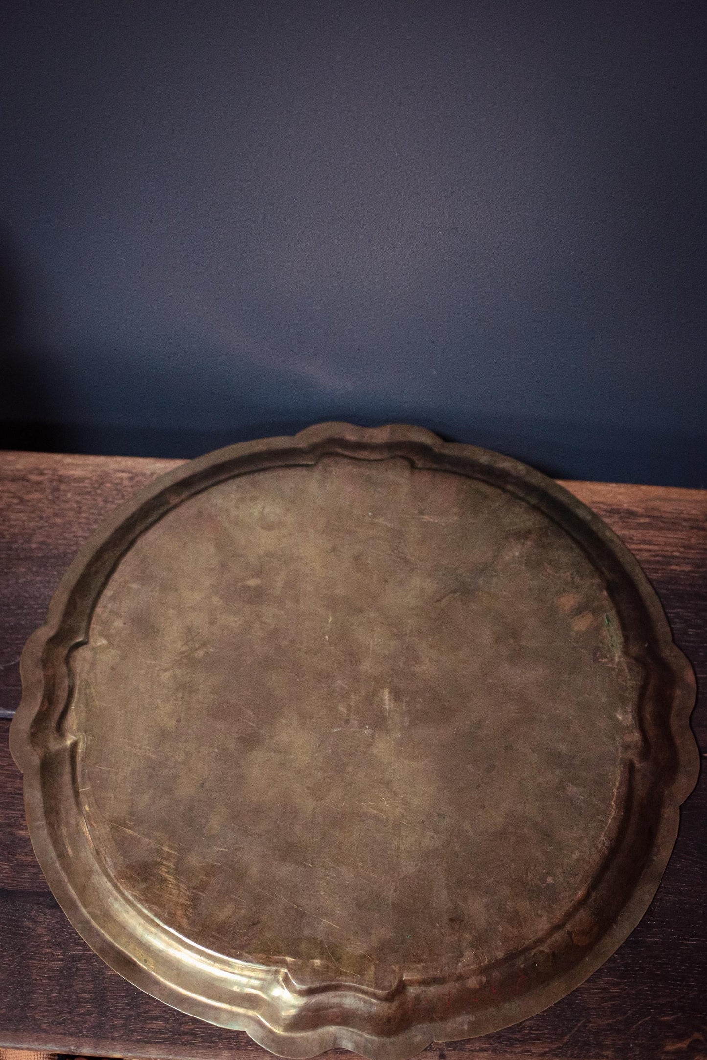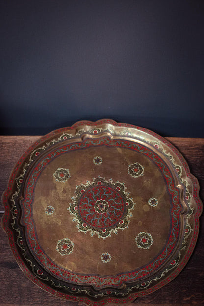 Brass Enamel Serving Tray - Vintage Brass Tray
