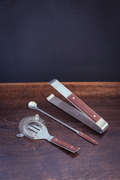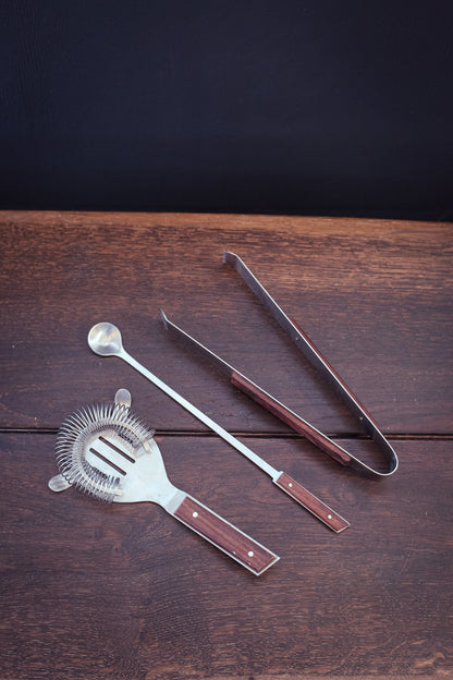 Japanese Steel and Rosewood Bar Tools set of 3 - Vintage Midcentury Modern Bar Tools Made in Japan