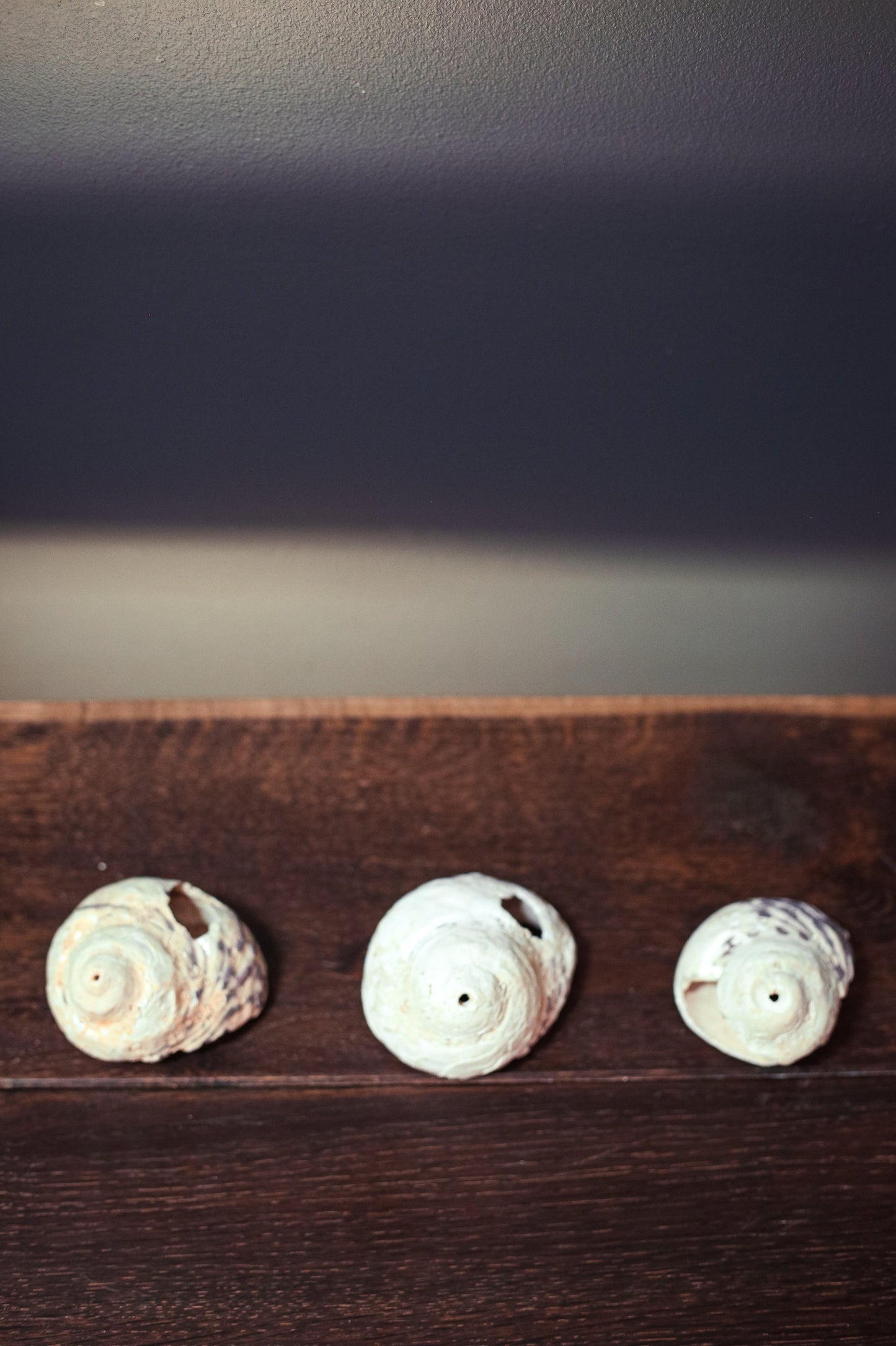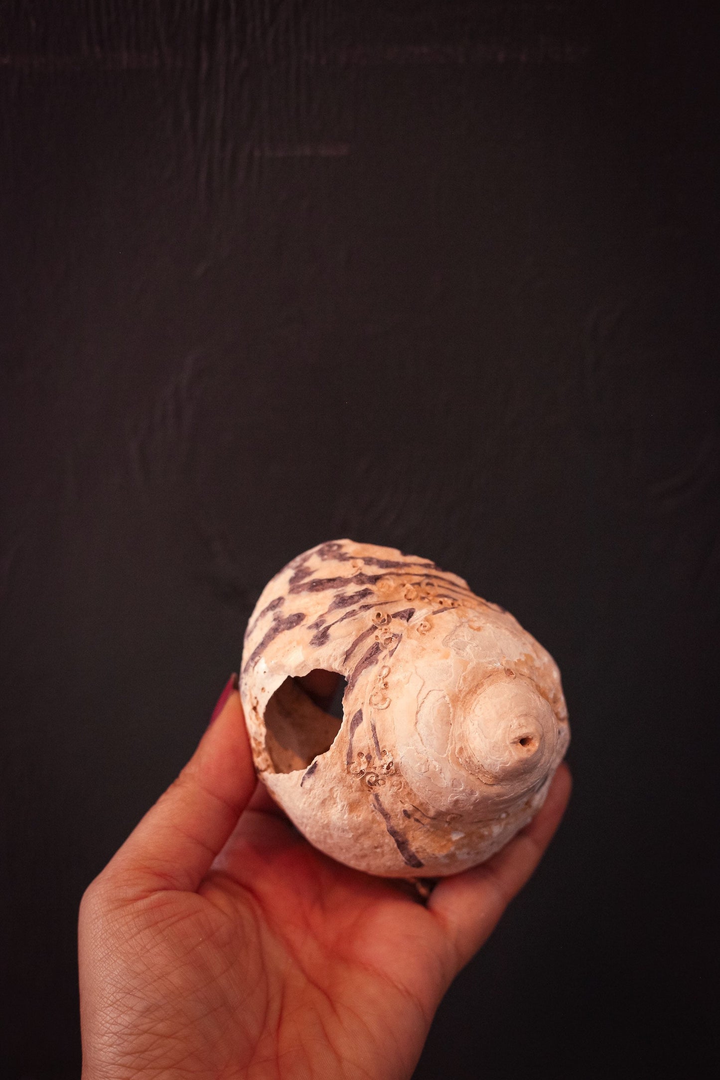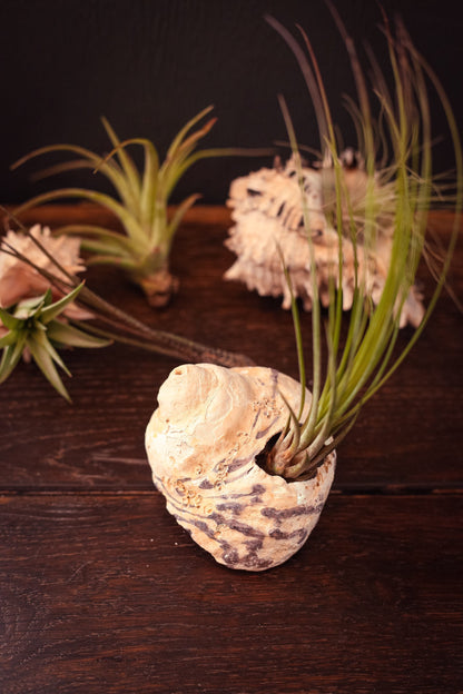Grey Spiral Moon Snail Shells - sold individually. The perfect addition to a bookshelf, coffee table, or styled on desk/nightstand on top of books/papers in a nautical or beach themed home. Would also make a beautiful addition to beach themed table setting. Also a perfect airplant planter.