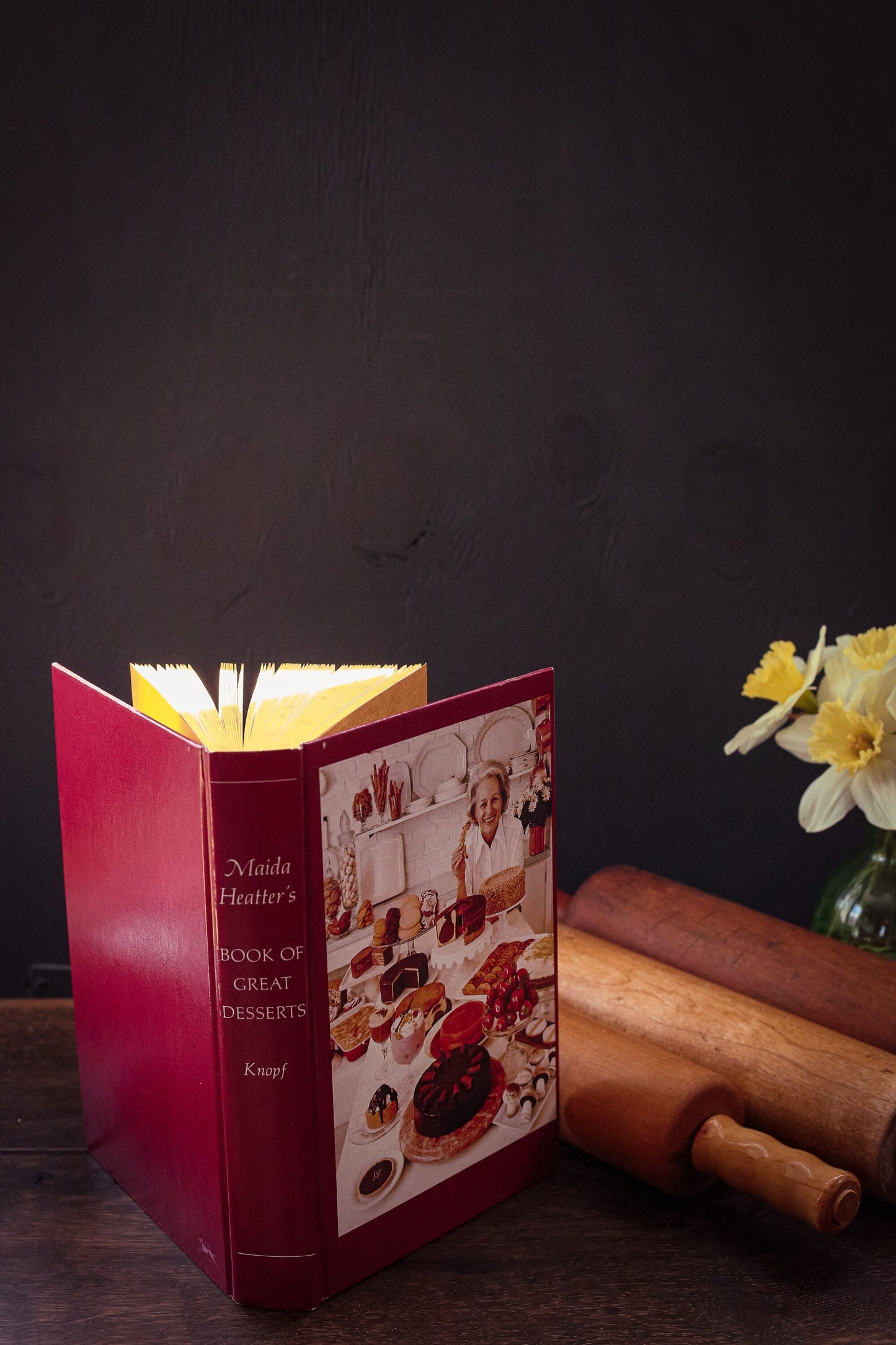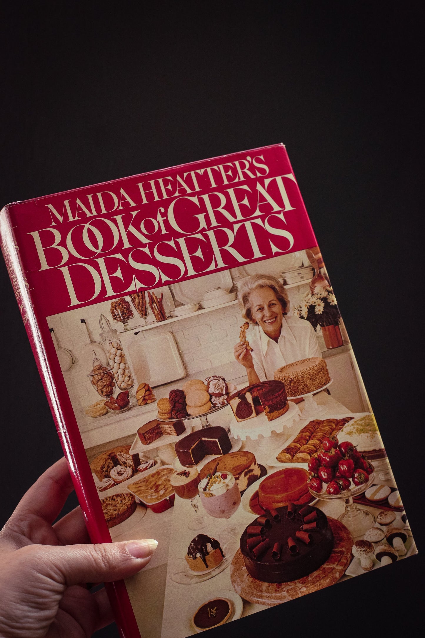 "The Book of Great Desserts" by Maida Heatter. Beautiful hardcover collectible baking book. A classic with a variety of baked sweets and a wonderful reference for an avid baker or addition to a baking library.