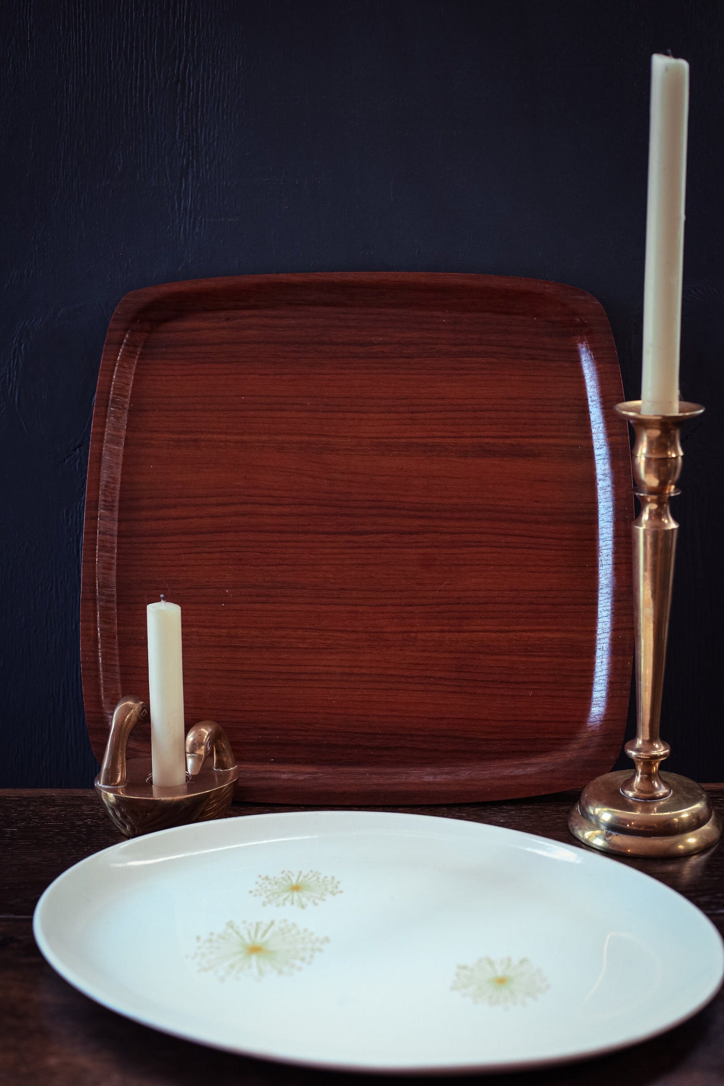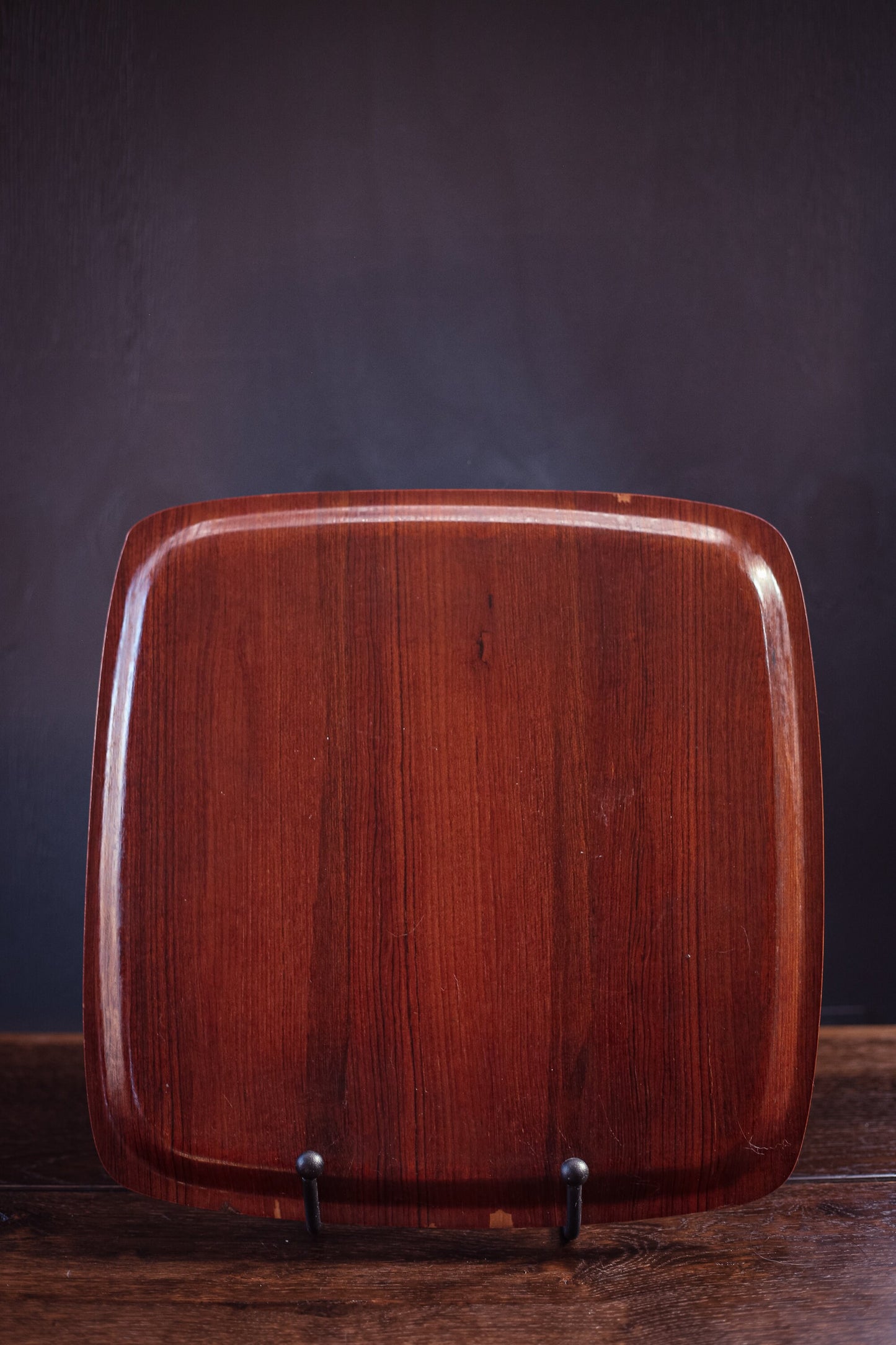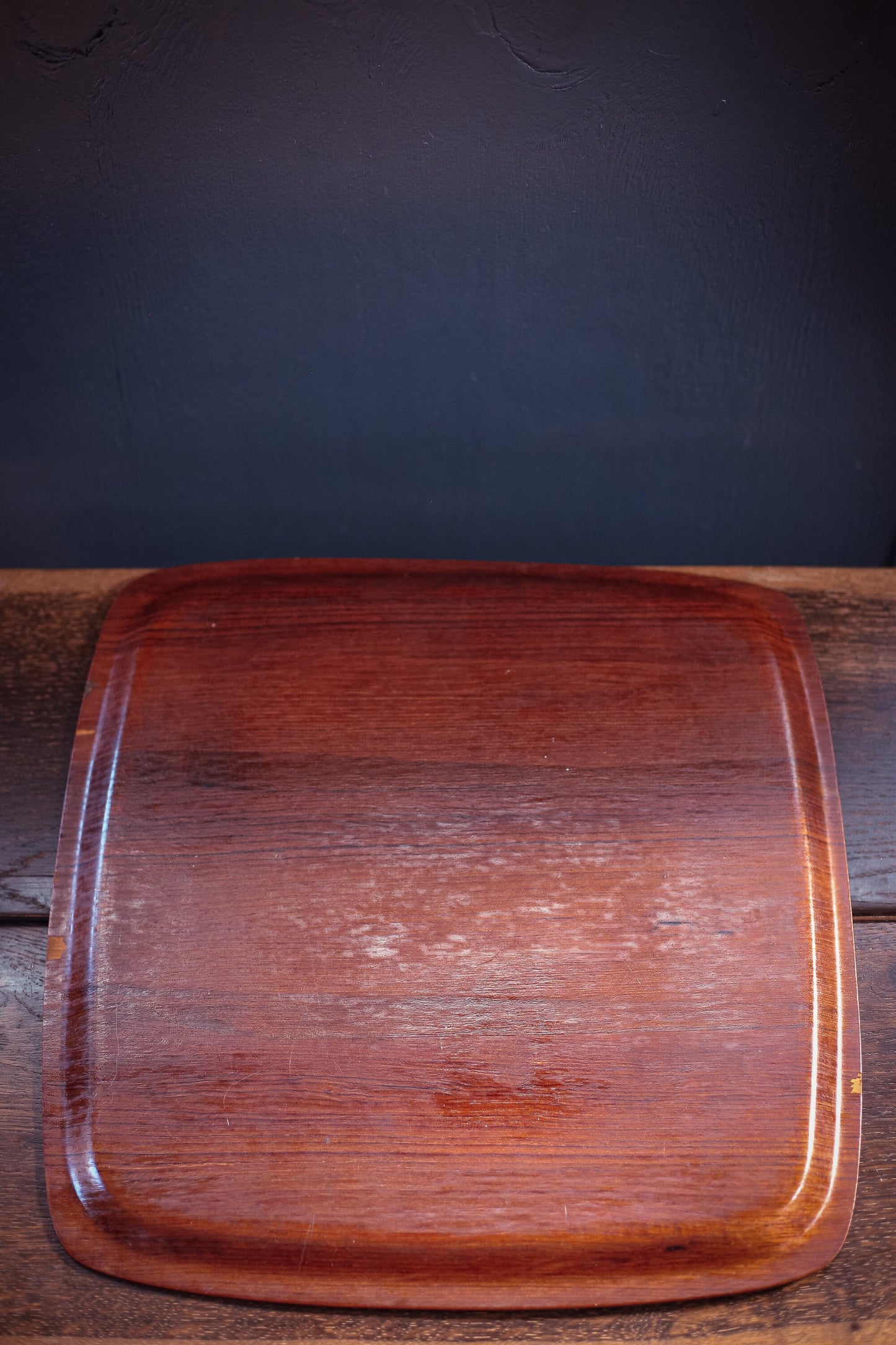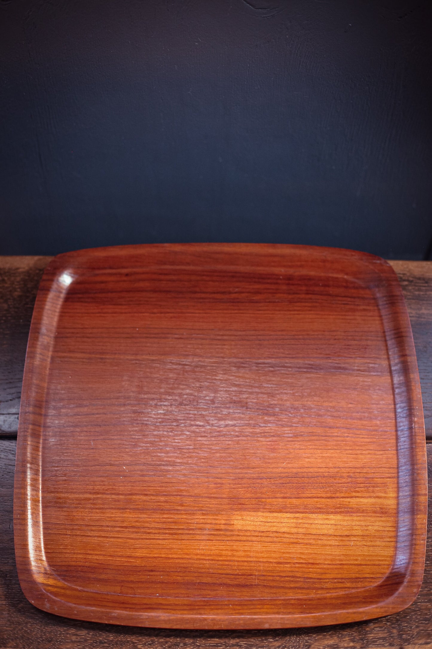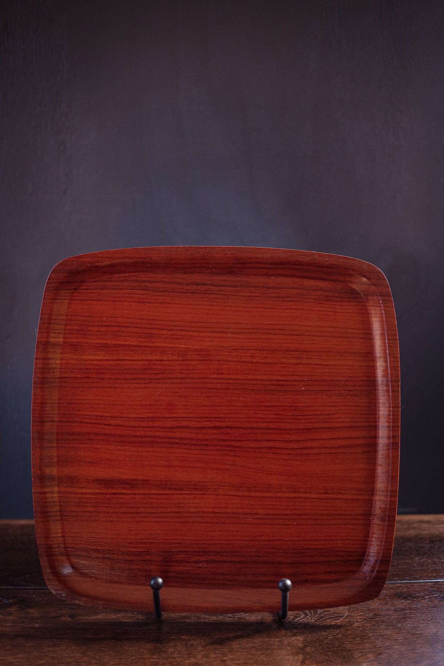 Midcentury Teak Veneer Bentwood Tray - Vintage Rounded Square Teak Serving Tray